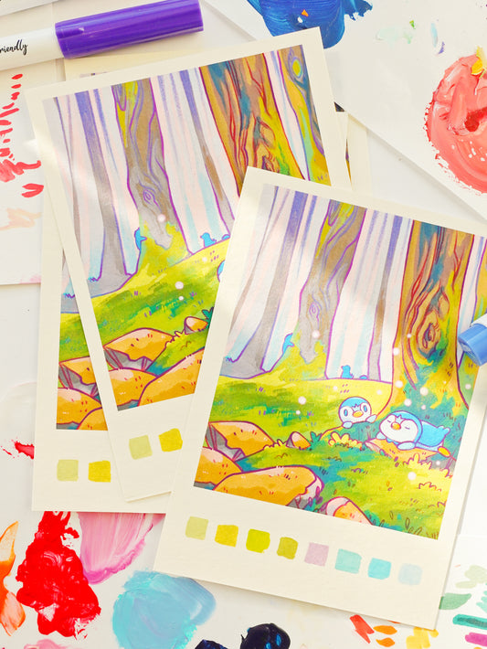 "Piplup sleeping in the forest" print