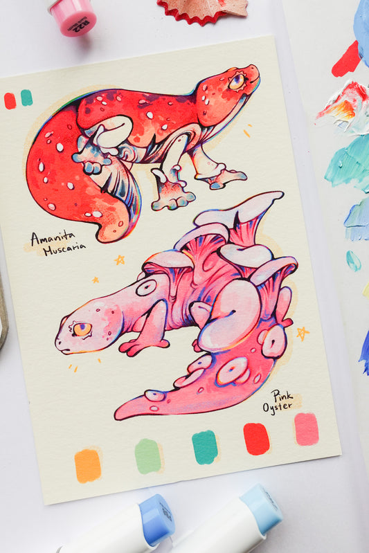 "Mushroom geckos red and pink" print